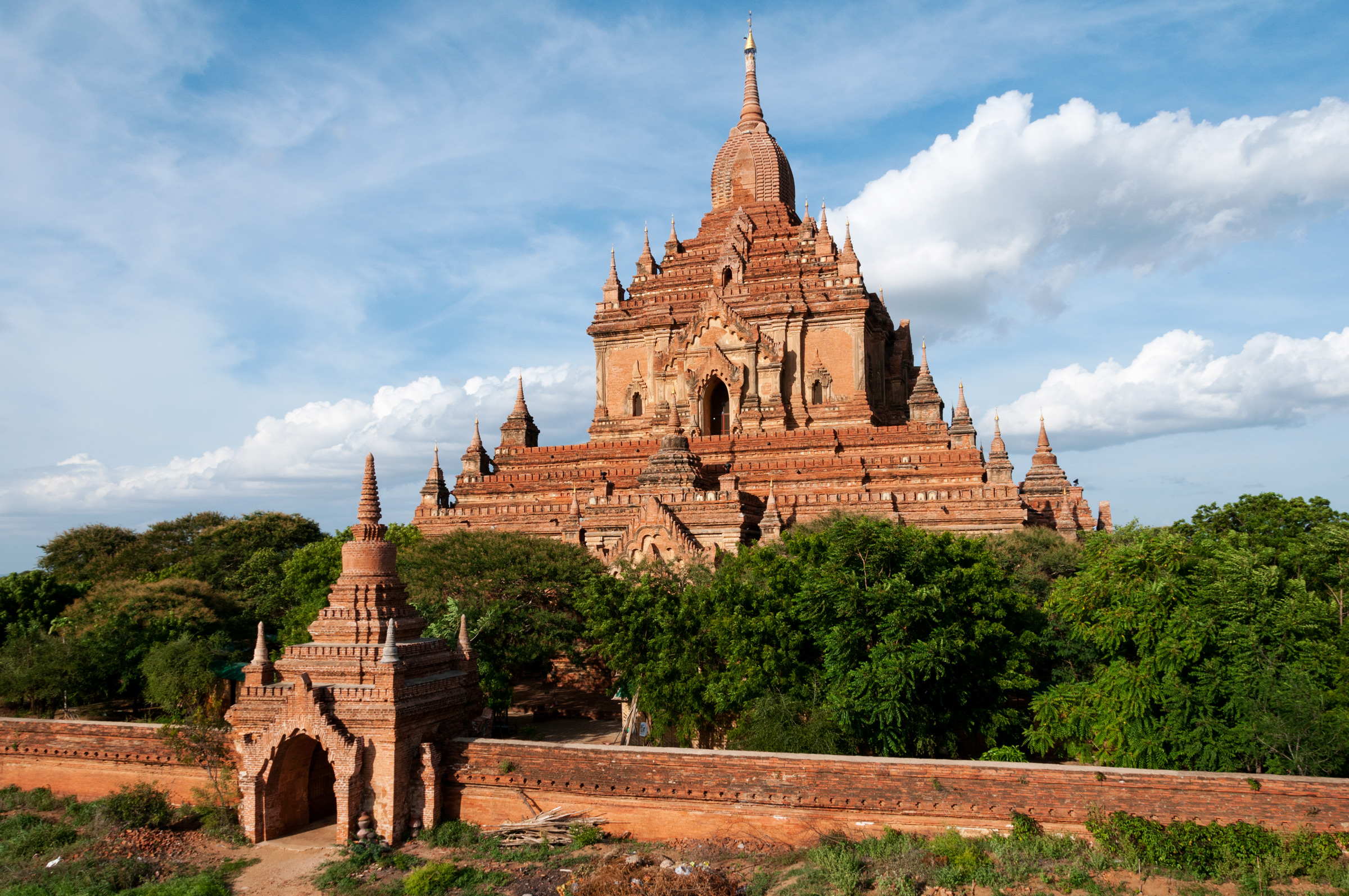 Shwezigon Pagoda is located in Nyaung- U on the eastern bank of the Irrawady river, about 4.2 miles from Bagan. It’s one of the famous pagodas in Bagan, and is considered the architectural prototype of the Burmese stupas. Constructed during the 11th century by King Anawrahta the founder of the Pagan empire. The main purpose of Shwezigon is to enshrine important relics such as emerald image of Buddha and Buddha’s frontal and collar bones.
