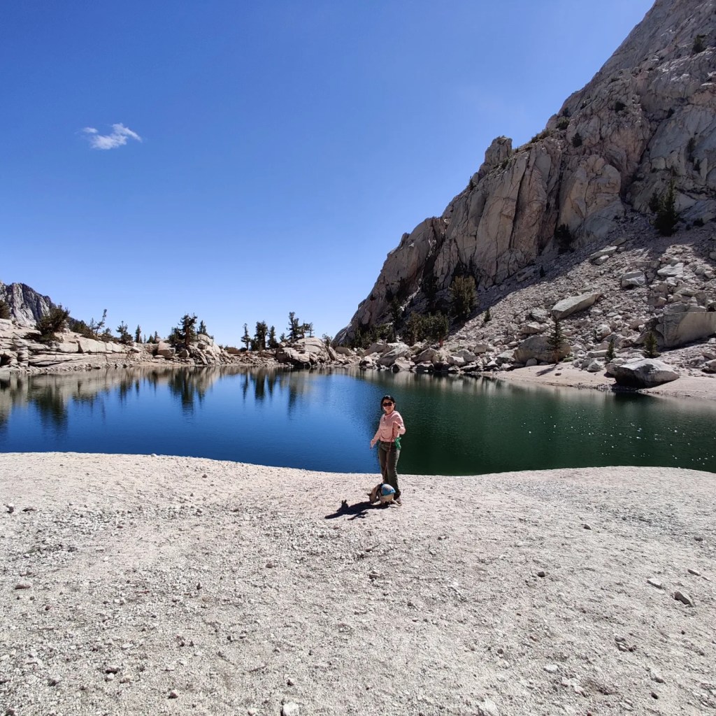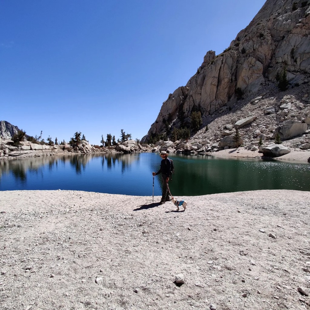 So we decided to train him to hike at Lone Pine Lake in the Sierra Nevada. This trail is a part of the Mt. Whitney trail, the highest mountain in the lower 48s. The hike to the lake is a 6.5 mi hike out and back at an altitude of 10,050 ft. We started by doing a couple of low elevation 2 mi hike every weekend leading up to the big hike. His first high elevation hike was 2 mi at 5k ft (Ice House Trail).